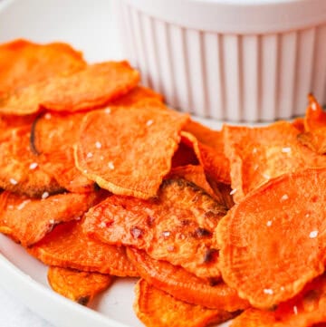 Treat these sweet potato potato chips as you would any regular potato chips. They’re a fun and tasty appetizer or snack, or they go great as a side dish with any of the following