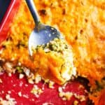 To prevent any soupiness for your lasagna, make this a day ahead and let it sit in the refrigerator. It will soak up the sauce and set well. Alternatively, you can do the same if you’re making it the same day. Allow the lasagna to cool down and sit in the refrigerator to set well. Then reheat the lasagna for the perfect piece of lasagna!